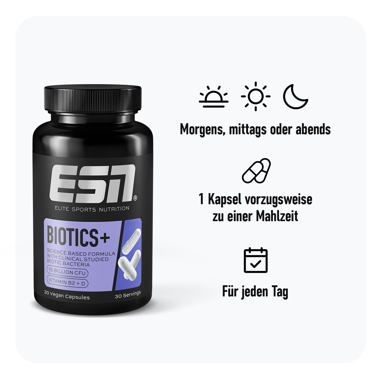 Strong combination: Biotics+ ist ein hochdosierter Bakterien-Komplex sinnvoll kombiniert mit Vitamin B2 und Vitamin D und entwickelt mit einem der weltbesten Probiotika-Forscher. Die enthaltene Vitamin-Kombi unterstützt dich mit voller Power, indem sie zur Verringerung von Müdigkeit und Ermüdung, zur normalen Funktion des Immunsystems, zu einem normalen Energiestoffwechsel und zur Erhaltung der Darmschleimhaut beiträgt. 12
