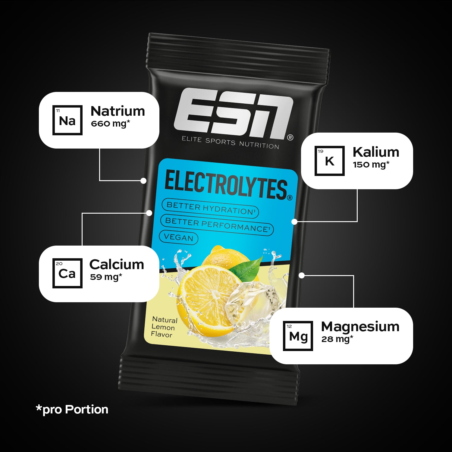 In unseren Electrolytes kombinieren wir Elektrolyte und Kohlenhydrate für optimalen Support – schauen wir genauer hin. Die enthaltenen Elektrolyte Natrium, Kalium, Calcium, Magnesium und Chlorid sorgen dafür, dass unser Körper richtig funktioniert: Calcium unterstützt die normale Muskelfunktion, während Magnesium zur Verringerung von Müdigkeit und Ermüdung beiträgt. Natrium trägt zur Aufrechterhaltung eines normalen Blutdrucks bei und reguliert den Wasserhaushalt im Körper. Kalium ist ebenso wichtig für eine normale Muskelfunktion und hilft, den normalen Blutdruck zu erhalten. Ein ausgewogenes Natrium-Kalium-Verhältnis ist dabei besonders wichtig, denn beide Mineralstoffe unterstützen die Flüssigkeitsbalance und die richtige Funktion von Nerven und Muskeln.2 Natrium hält Wasser im Körper, während Kalium die Zellen stabilisiert. Ein gutes Gleichgewicht verhindert Probleme wie bspw. Muskelkrämpfe und sorgt für eine optimale Körperfunktion.