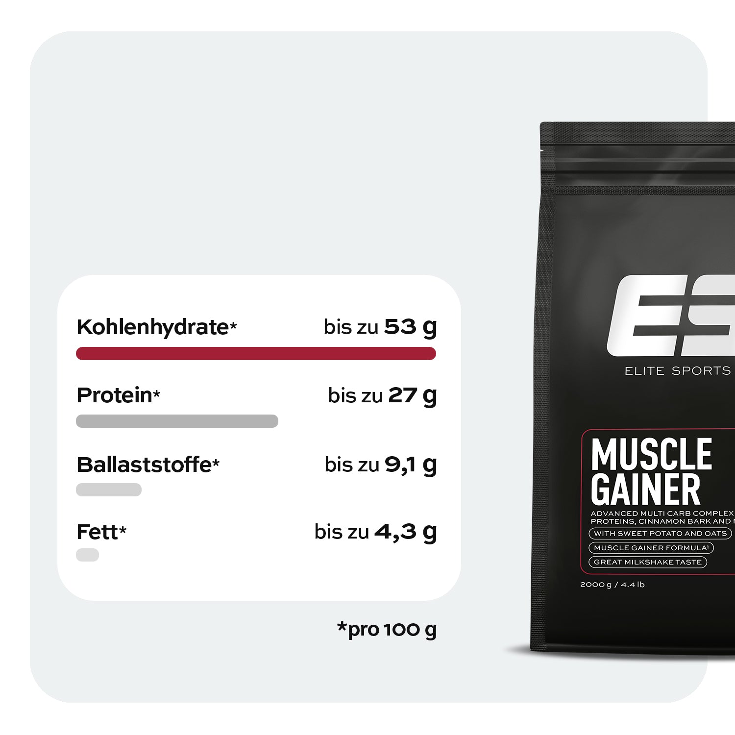 Next level support for maximum gains: Der Muscle Gainer ist unser effektivster Support für maximalen Muskelaufbau. 500 kcal für dein Kalorienziel, ein innovativer Multi Carb Complex für schnelle und langanhaltende Energie, hochwertige Proteine für deine Muskeln und eine ideale Fettquelle – die perfekte vollwertigen Mahlzeit für deine Massephase im ultra-cremigen Milkshake-Style. 12 Made for maximum results.