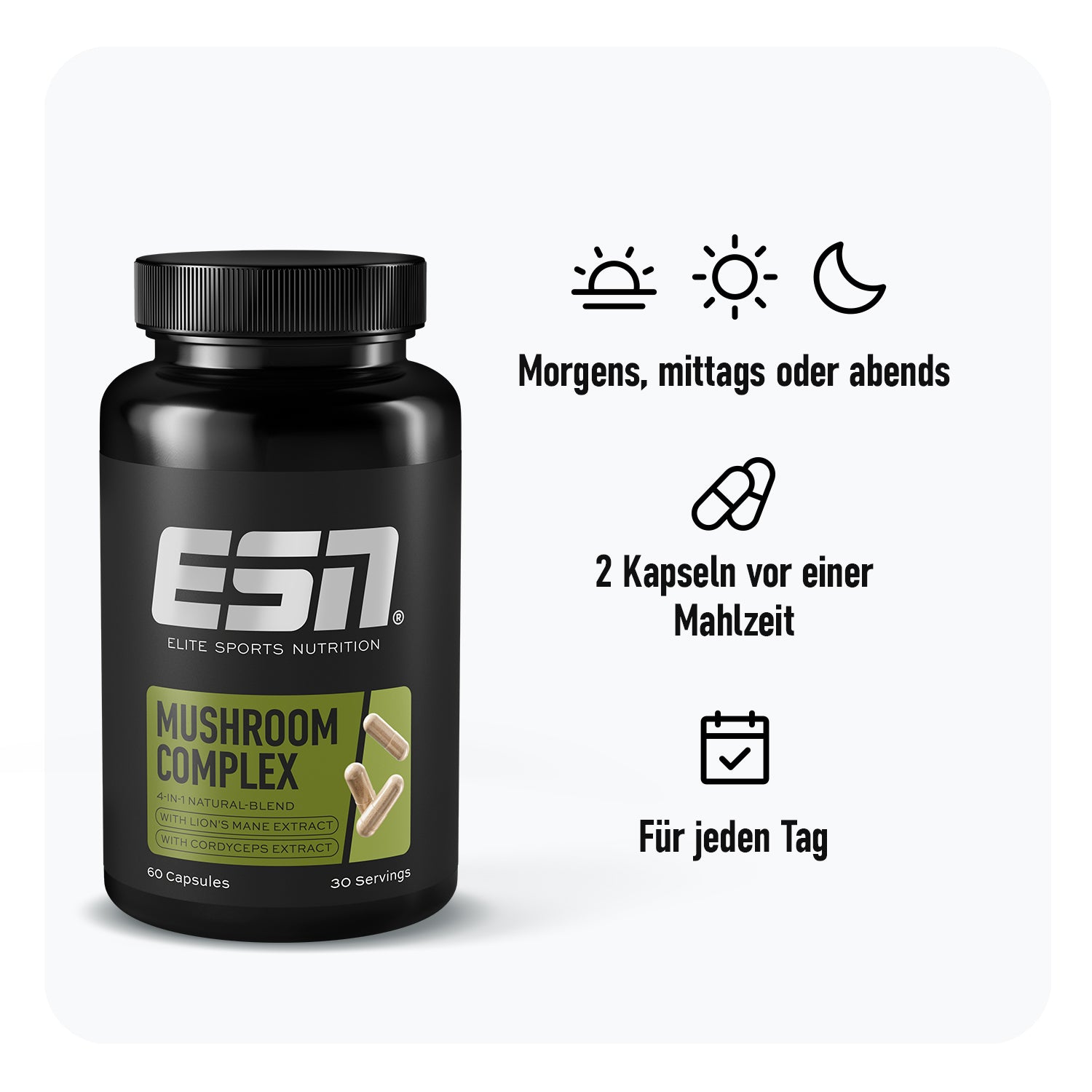 • Hochdosierte Mushroom-Power aus Lion’s Mane, Cordyceps, Reishi & Chaga