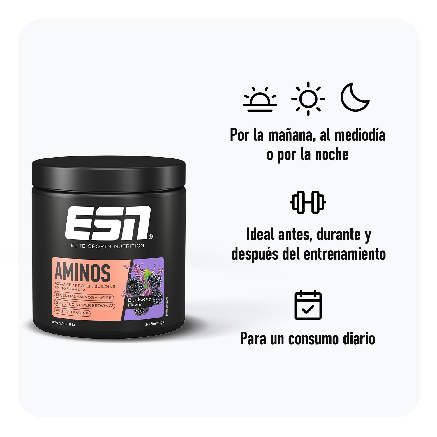 - Con EAA, otros 3 aminoácidos eficaces, AstraGin® y vitamina B6