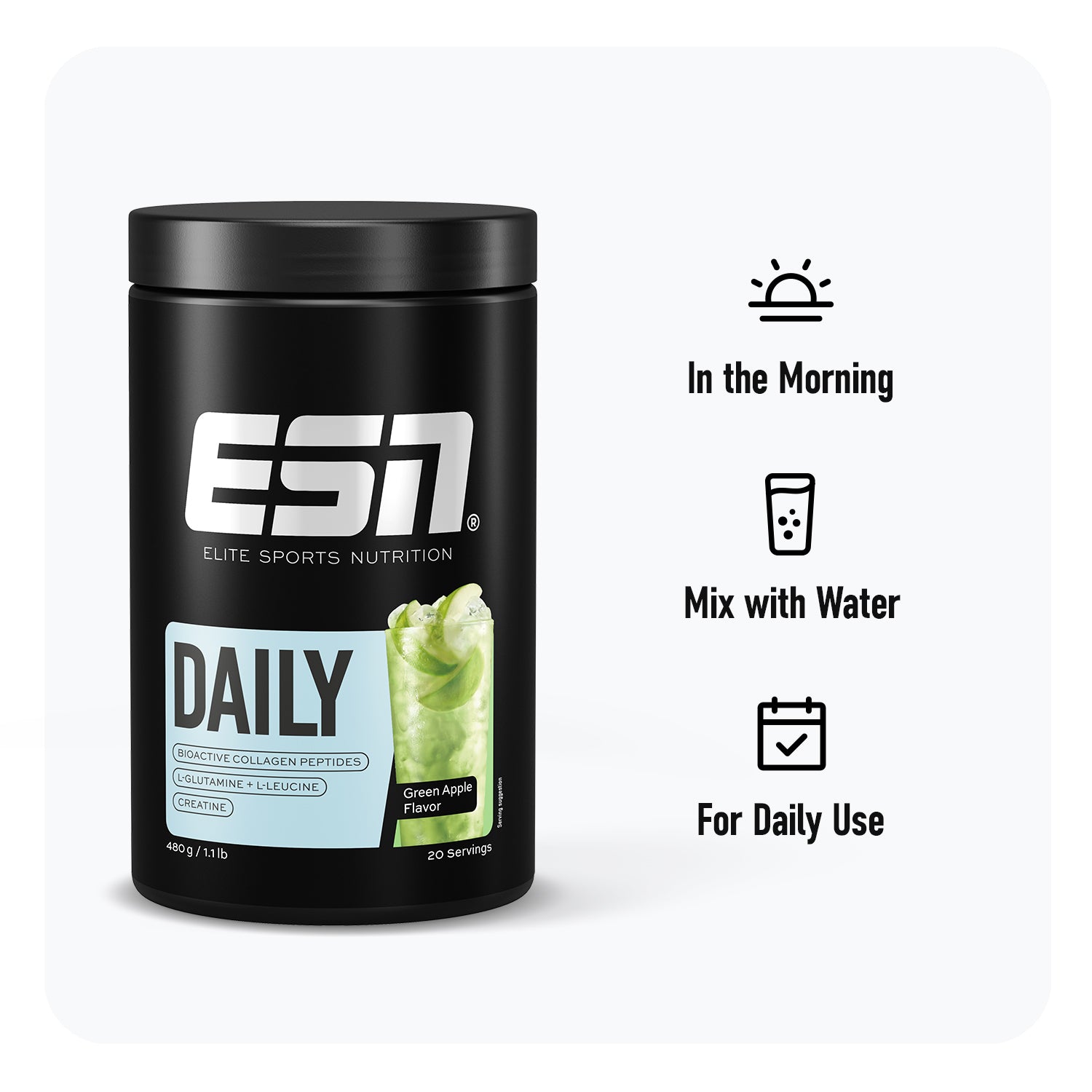 La rutina es una de las recetas para el éxito a largo plazo en la vida, también en el entrenamiento con pesas y la musculación, y no sólo en el entrenamiento en sí, sino también en la forma de alimentar el cuerpo. Sólo un suministro adecuado a largo plazo de los bloques de construcción necesarios le ayudará a progresar de forma óptima y a alcanzar sus objetivos. A largo plazo aquí también significa continuo y rutinario - para ser precisos, recomendamos la suplementación diaria con nuestro Daily y su combinación seleccionada de Collagen Peptides, creatina¹, glutamina y leucina. Echemos un vistazo a cómo los ingredientes pueden ayudarle a diario.