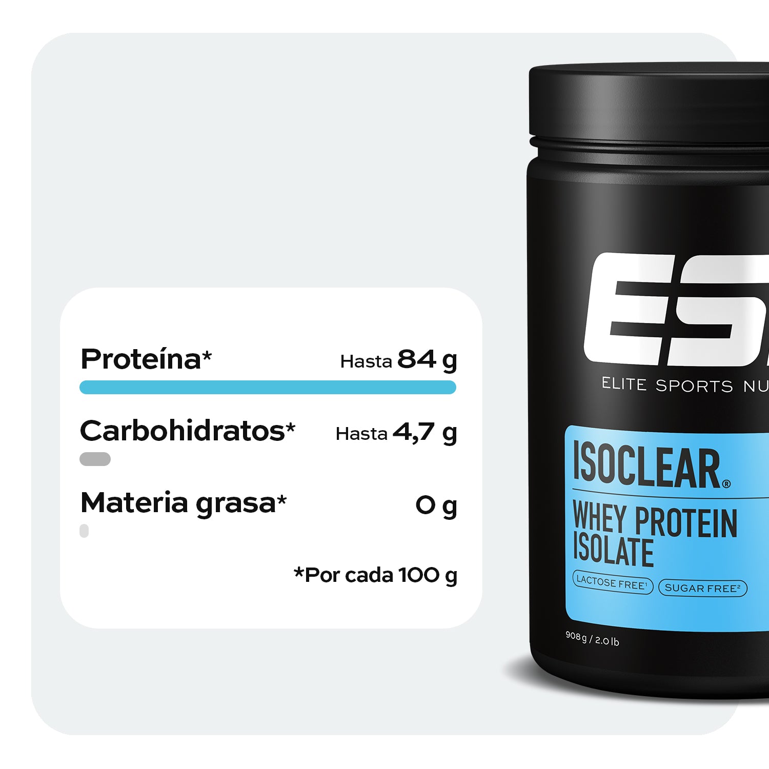 Fresco, claro y lleno de proteínas: Isoclear. Esta es nuestra bebida de proteínas refrescante, que dependiendo del sabor sabe a zumo, refresco o té helado, ¡y todo esto sin azúcar, grasa y lactosa!2 Así que es perfecto para proporcionar a tus músculos proteínas, facilitar el cumplimiento de tus necesidades proteicas o para añadir variedad a tu juego de proteínas.