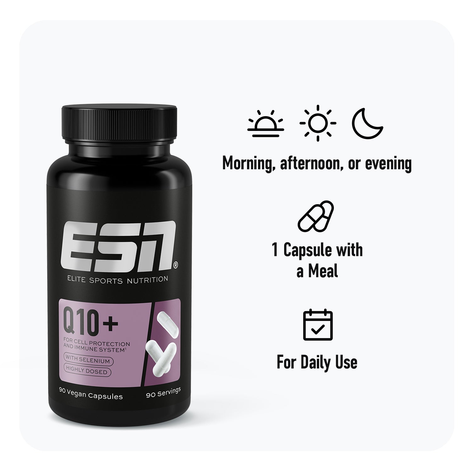 Modo Power: On - con nuestro Q10 Pro + selenio. La coenzima Q10, o CoQ10, es un factor importante cuando se trata de energizar las mitocondrias, ideal para su rendimiento durante el entrenamiento.1 ¿Y el selenio? Este oligoelemento puede unirse a los radicales libres, lo que a su vez protege a las células del daño oxidativo y puede ayudar a los músculos durante el entrenamiento.2,3,4