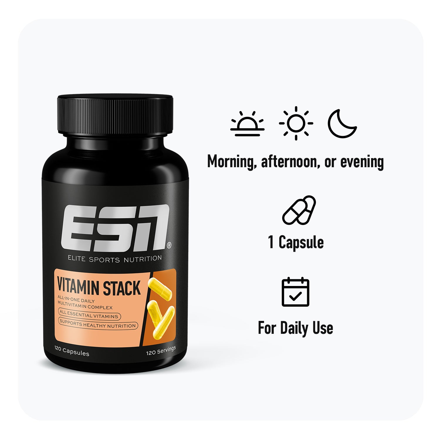 Mezcla de vitaminas [vitamina C (ácido L-ascórbico), antiaglomerante (celulosa microcristalina) niacina (nicotinamida), vitamina E (acetato de DL-alfa-tocoferilo), ácido pantoténico (D-pantotenato cálcico), biotina (D-biotina), vitamina A (acetato de retinilo), vitamina D (D3/colecalciferol), vitamina B12 (cianocobalamina), vitamina B6 (clorhidrato de piridoxina), riboflavina (vitamina B2), tiamina (mononitrato de tiamina), vitamina K (K1/fitomenadiona), ácido fólico (ácido pteroilmonoglutámico)], cubierta de la cápsula (agente de recubrimiento [hidroxipropilmetilcelulosa]).Vitamin Stack Key-Facts