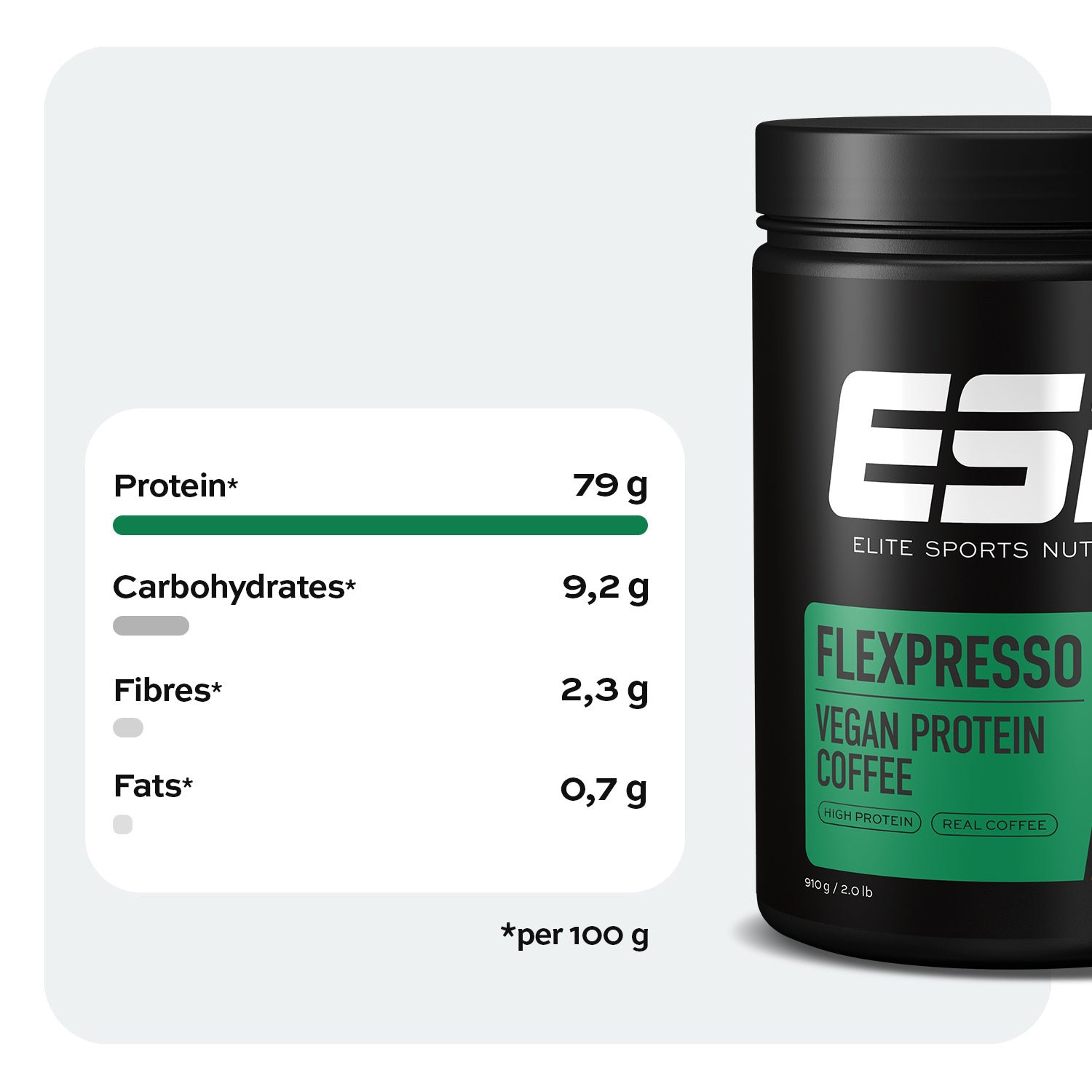 Empieza tu día de forma vegana – con Flexpresso Proteína de Café Vegana. En nuestro café proteico combinamos la valiosa potencia de las proteínas vegetales con auténtico café. Plena cremosidad, pleno sabor y pleno apoyo para tus músculos.1