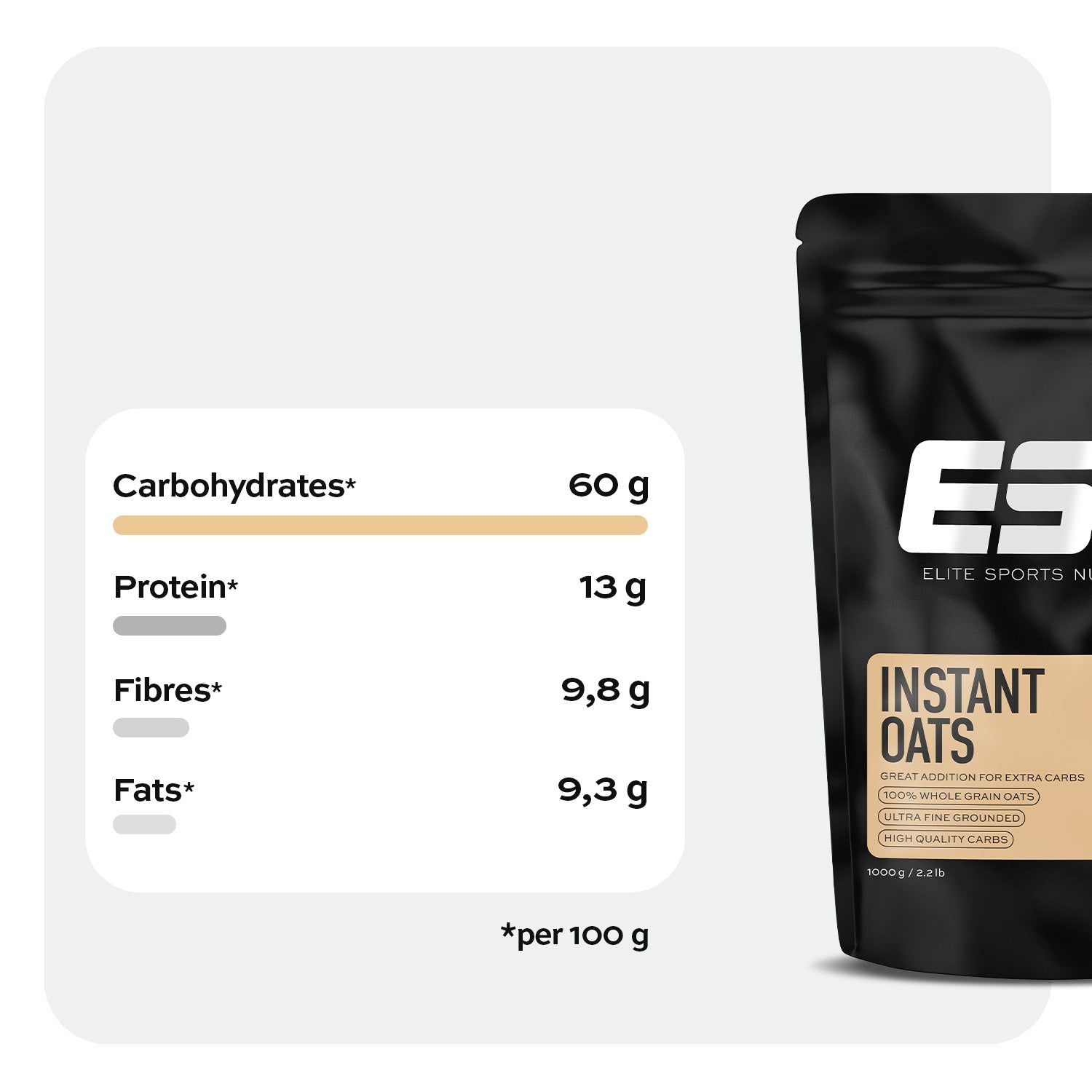 Potencia de carbohidratos instantánea: nuestra Avena Instantanea le proporciona en segundos carbohidratos complejos, valiosas proteínas y fibra de alta calidad, que favorecen sus músculos y su recuperación y le aportan energía rápida.1,2