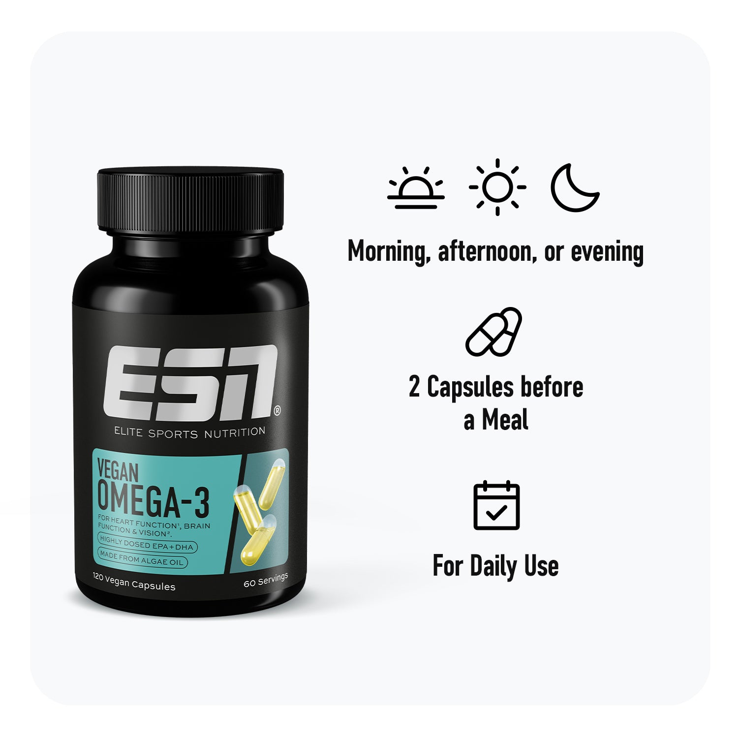 ¡El Omega-3 se vuelve vegano! Nuestras cápsulas de Omega-3 vegano te proporcionan EPA y DHA provenientes de algas marinas sostenibles. Para un apoyo óptimo de tu corazón, cerebro y visión.1,2,3